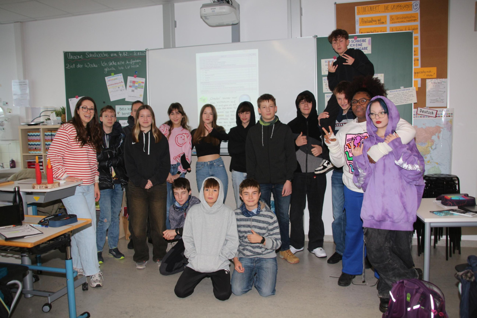 Trotzdem seien die Lernenden im Austausch miteinander, auch der gemeinsame Unterricht in analoger Weise und im Klassenverband käme nicht zu kurz. „Insgesamt findet ca. 60 % des Unterrichts mit digitalen Geräten statt! Wichtig ist es, eine gute Balance zwischen digitalem Unterricht und analogen Einheiten zu finden“, betonte Frau Imberi, die Klassenleiterin. „Aufgrund der aufgespielten Software können die Achtklässlerinnen und -klässler die Geräte auch nur zu Lernzwecken verwenden, keinesfalls zum Spielen oder zum Chatten!“ Die Schülerinnen und Schüler fanden alle, dass die neuen Lernformen sehr motivierend seien und viel Papier sparen. Auch sei der Lernstoff sehr übersichtlich angeordnet und man könne Arbeitsblätter selbst kreativ gestalten.